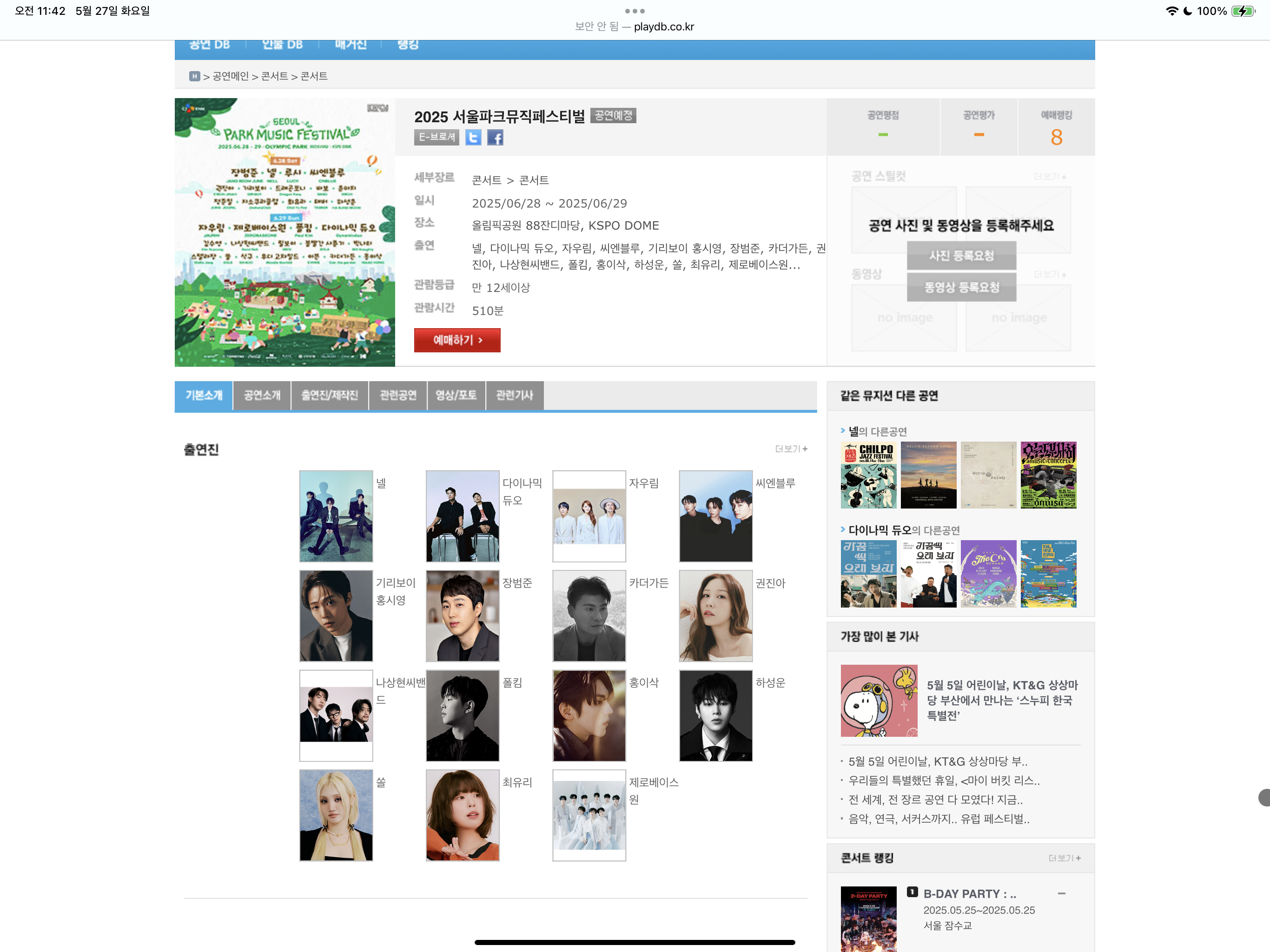 콘서트 > 콘서트 2025/06/28 ~ 2025/06/29 올림픽공원 88잔디마당, KSPO DOME 넬, 다이나믹 듀오, 자우림, 씨엔블루, 기리보이 홍시영, 장범준, 카더가든, 권진아, 나상현씨밴드, 폴킴, 홍이삭, 하성운, 쏠,