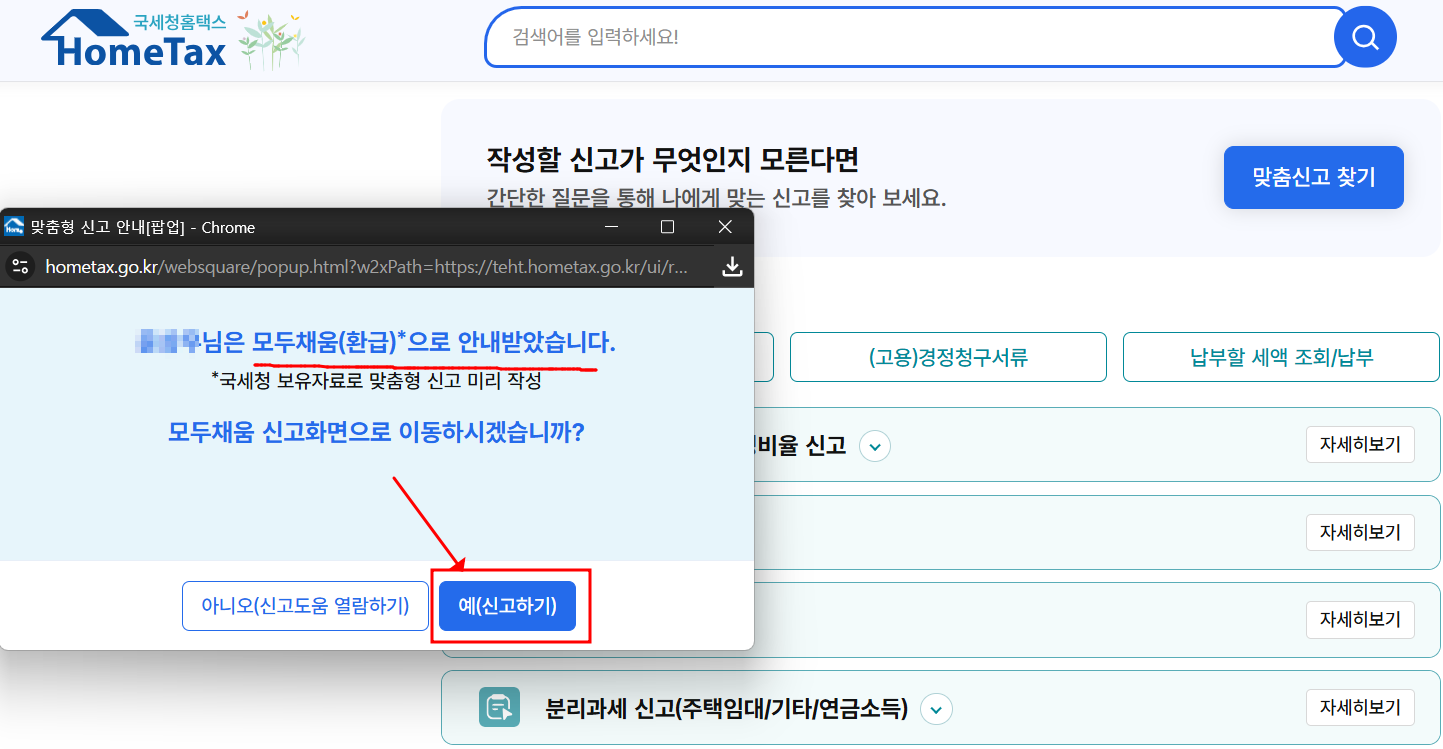 - 홈택스 로그인 → '모두채움 신고' 클릭